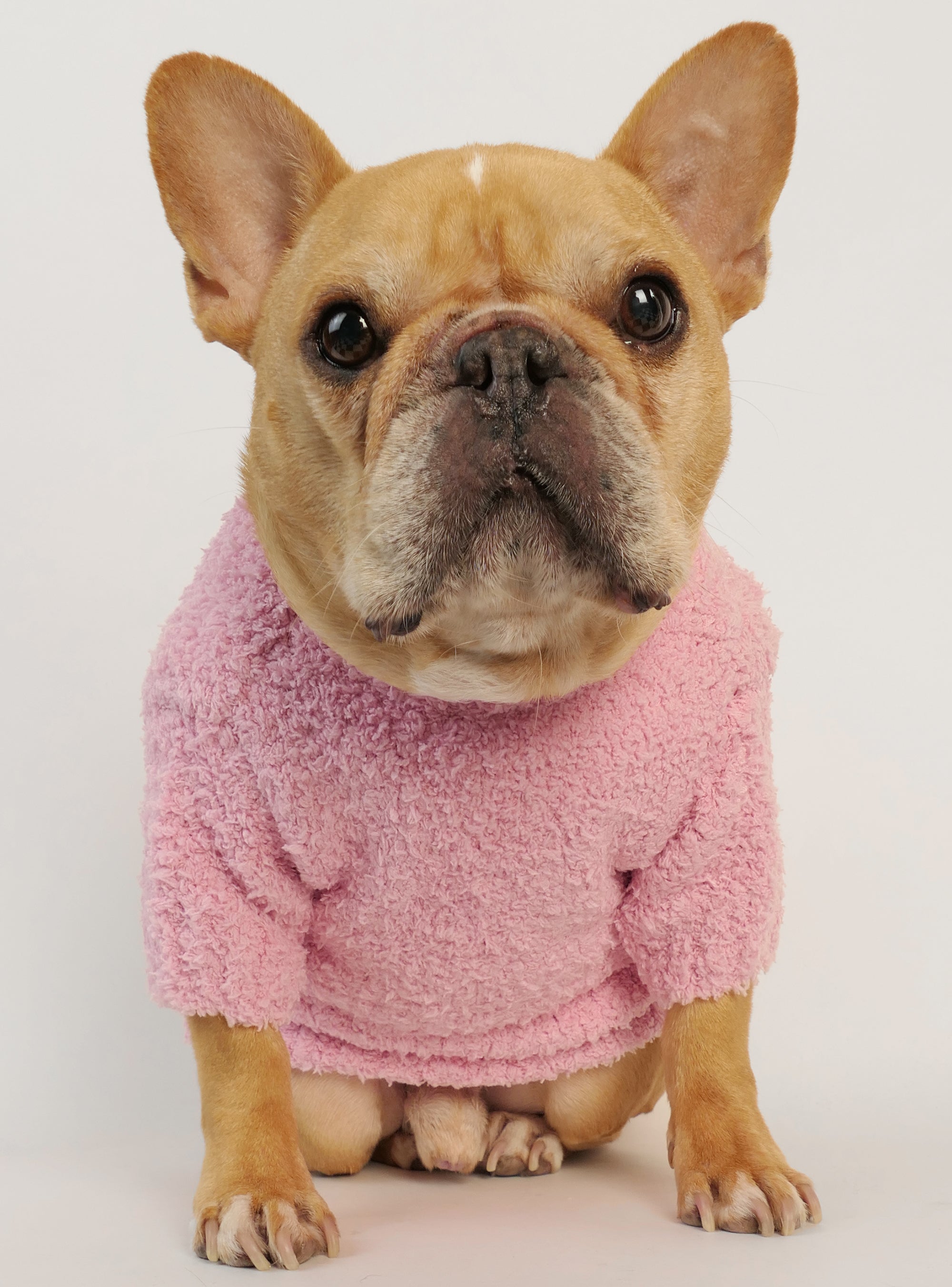 Soft pet sweater, featuring: 100% cotton. Huey (the model) has a chest measurement of 20″ and wears size Large.