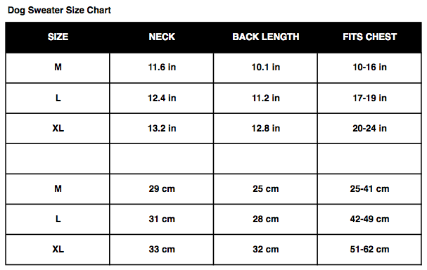 *PLEASE NOTE: These sweaters run on the small side. Be sure to check your pet’s measurements before ordering. If you are in between sizes, order the larger size.
